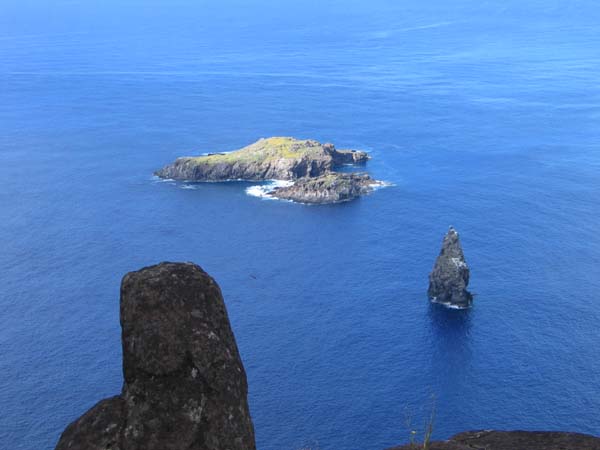 Vi gik – med disse spekulationer – turen forholdsvis hurtigt rundt, på ca. 30 minutter. Vi kunne måske godt have haft givet os lidt mere tid, men på den anden side fik vi da set det hele. Og det skal dertil siges at der er fantastisk, med en enestående udsigt over de små øer hvor de unge øboere i sin tid skulle hente det først fugleæg hvert år i en livsfarlig konkurrence. Den heldige vinder kunne få den kvinde på øen han ville, og fik desuden visse rettigheder af øens høvding.
