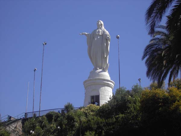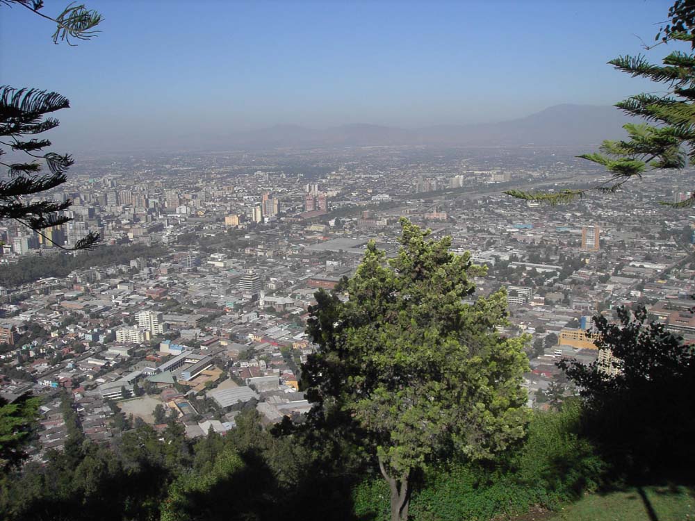 Næste dag tog vi metroen til station Baquedano og gik ad Pio Nono op til Zoo og tog den første tur med bjergbanen op til Cerro San Christobal. Vi købte en kombineret billet til bjergbanen (Funicular) og svævebanen (Teleferico). Vi brugte lidt tid på Cerro San Christobal, kiggede i boderne og nød den flotte udsigt ud over millionbyen Santiago. Der var også en enorm statue af jomfru Maria (med masser af lys på om aftenen), og der var flere der formelig holdt andagt på bænkene neden for statuen, til en lidt messende, men inciterende musik fra et installeret musikanlæg under et stort halvtag. Vi tog så, som planlagt med Teleferico til dens endestation (ca. 2 km). Her kunne vi dog ikke rigtigt lokalisere hvor vi var endt, og da der yderligere så lidt dødt ud, blev vi enige med hinanden om at tage den tilbage igen til Cerro San Christobal, hvor vi igen tog bjergbanen ned til startpunktet.