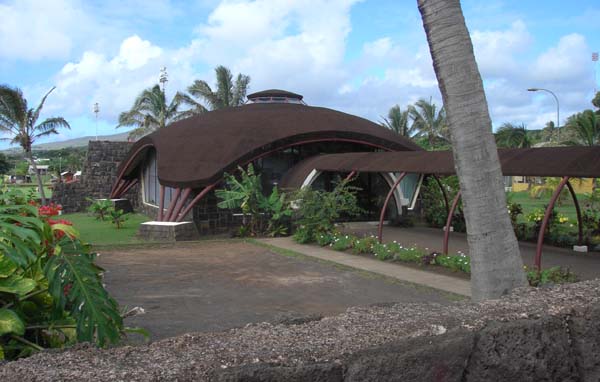 øen. Den blev rejst ved at den blev løftet med palmestammer som vægtstænger, og